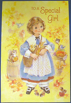 1990s, THANKSGIVING PILGRIM Girl PAPER DOLL Greeting Card, Dayspring