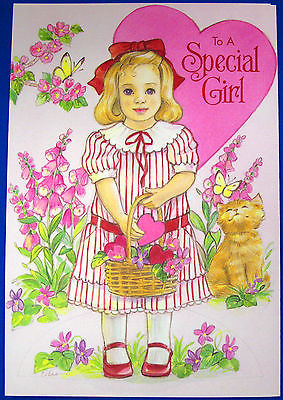 1990s VALENTINE Girl & her Dolly PAPER DOLL Greeting Card Dayspring, Art: Eileen