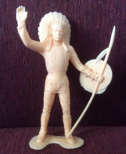 Title (ebay affiliate link): Vintage 60's Plastic Louis Marx & Co Indian Chief Toy Figure Shield Spear 6"