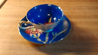 Vintage Chugai Occupied Japan Bright Blue With Iris Floral Footed Cup and Saucer