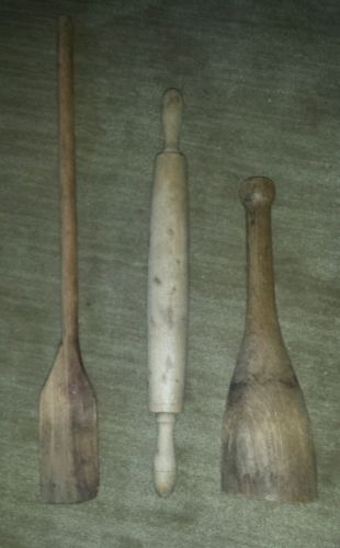 Title (ebay affiliate link): Antique Primitive Kitchen Tools Utinsils Wood Rustic Lot of 3