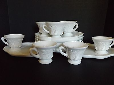Indiana Colony Harvest Grape Grapevine Milk Glass Snack Set 16 Sixteen Piece