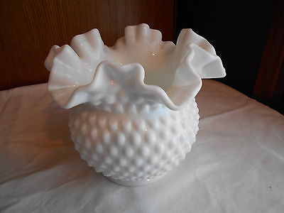 Fenton Vintage White Milk Glass Hobnail Double Crimped 5" Rose Bowl Vase