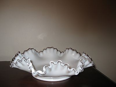 Large White Milk Glass Fenton Bowl Silver Crest