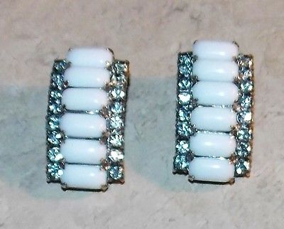 Title (ebay affiliate link): Vintage White Milk Glass Clear Rhinetone Silvertone Earrings Costume Jewelry