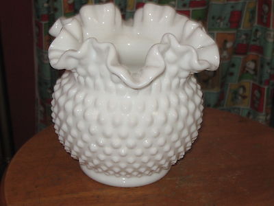 Fenton Hobnail Milk Glass Double Crimp Vase
