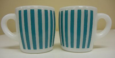 Title (ebay affiliate link): Set of Two Vintage Hazel Atlas Aqua Teal Candy Striped White Milk Glass Mug Cup