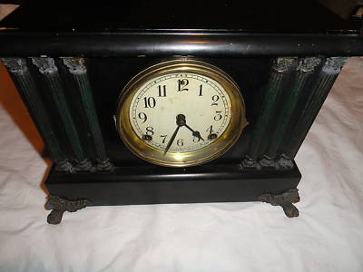 ANTIQUE SESSIONS CLOCK CO MANTEL CLOCK FOOTED PILLARS