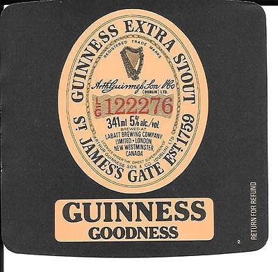 GUINNESS EXTRA STOUT 341 ML LABATT BREWING COMPANY LTD LONDON NEW WESTMINISTER