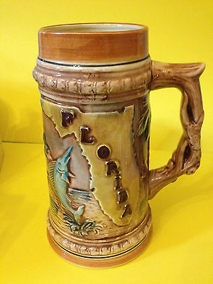 Vintage Florida Souvenir Collectible Tall Beer Stein/Mug Japan-Flamingo Marlin