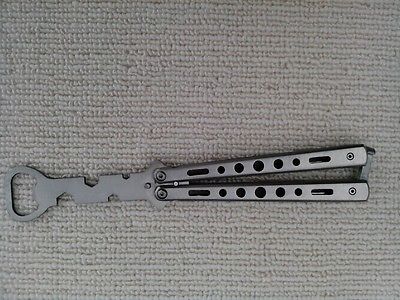 silver Practice Balisong Butterfly Trainer Knife style Beer bottle Opener