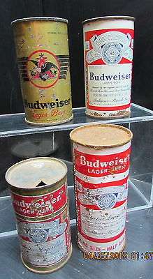 Lot of 4 Vintage Budweiser Beer Flat Top Cans IRTP Keglined, 1/2 Quart, & More