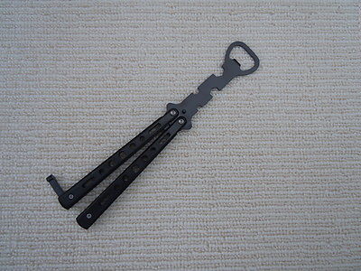 Practice Balisong Butterfly Trainer Knife style Black Beer bottle Opener K013-1