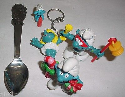 Title (ebay affiliate link): Vintage Smurf Items - Figures, Spoon and Keychain
