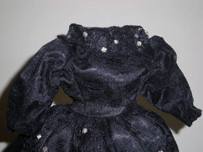 ANTIQUE DOLL DRESS BLACK LACE RHINSTONE CAPE/CLOAK