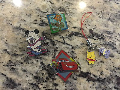 3 Rare Disney World Pins Cars Nemo Snowman Hidden Mickey + Pooh Cellphone Charm