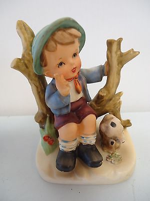 HUMMEL FIGURINE BOY SITTING WITH HIS DOG 8213 RARE NO CHIPS NICE