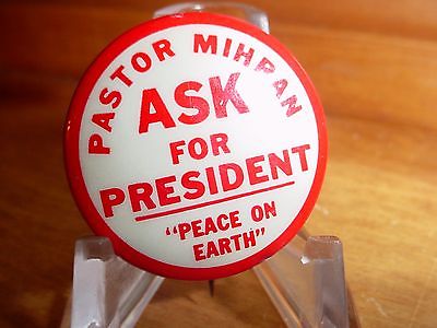 Title (ebay affiliate link): 1964 Pastor Mihran Ask President 3rd Party Campaign pinback button
