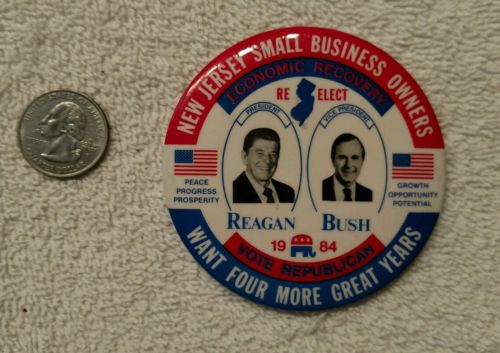 Title (ebay affiliate link): NEW JERSEY SMALL BUSINESS OWNERS-RE-ELECT REAGAN/BUSH 1984 BUTTON