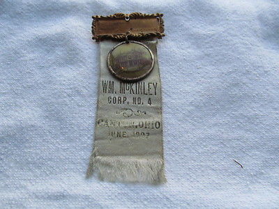 POLITICAL SILK RIBBON & CELLULOID BUTTON,WM.MCKINLEY CORP,NO.4 ,CANTON ,OH, 1907