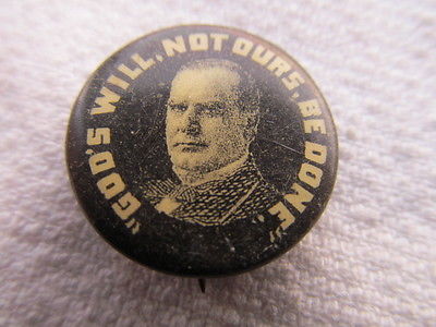 POLITICAL CELLULOID BUTTON MCKINLEY " GOD'S WILL,NOT OURS,BE DONE"