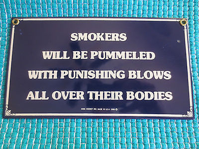 Vintage Porcelain Enameled Advertising SMOKERS WILL BE PUMMELED