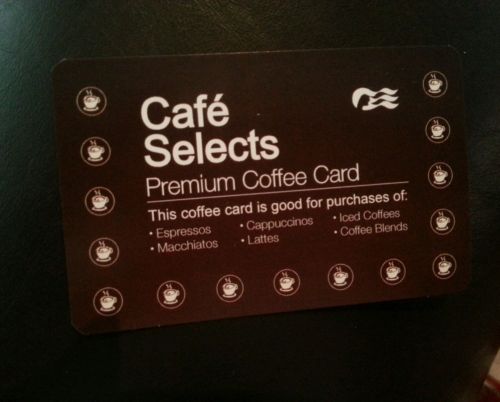 Title (ebay affiliate link): Princess Cruise Cafe Selects Specialty Coffee card 15 drinks