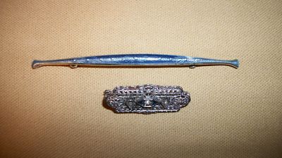 Title (ebay affiliate link): Two (2) Beautiful Silver Antique Pins with Hallmark