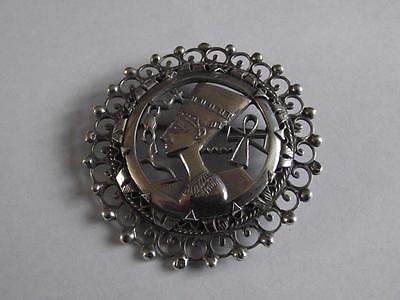 Vintage silver Egyptian Pharaoh Ankh pendant brooch marked circ1940's