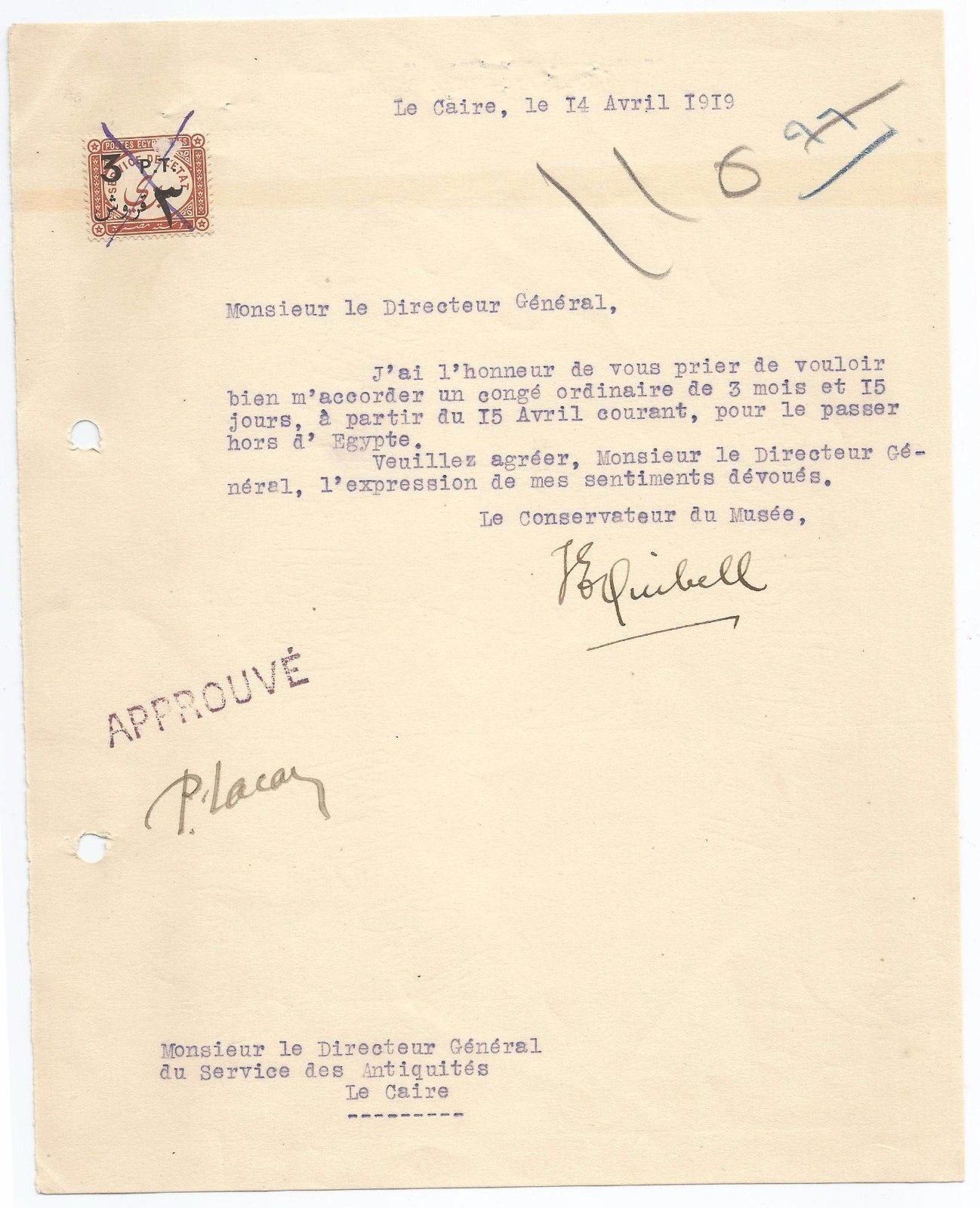 EGYPT 1919 DOCUMENT SIGNED GB UK J.E. QUIBELL & LACAU