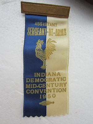 1950 INDIANA DEMOCRATIC State Mid Century CONVENTION Sergeant Arms Ribbon Badge