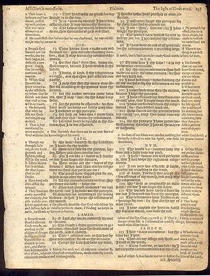 1580 Geneva Black Letter Bible Leaf/RARE/PSALM 119:105/THY WORD IS A LANTERN!