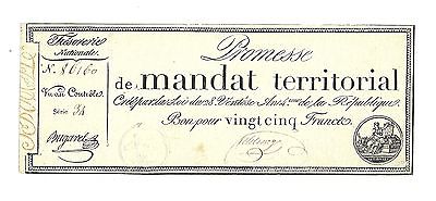 LARGE French Revolution "MANDAT TERRITORIAL" note 25 Francs 1796