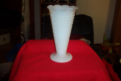 VERY LARGE WHITE MILK GLASS HOBNAIL VASE-VINTAGE 1921