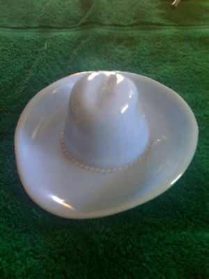 BLUE milk glass hat dish unsigned- AKRO agate? detailed