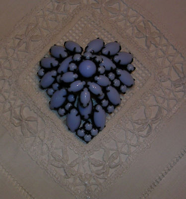 VINTAGE BLUE MILK GLASS HEART SHAPE BROOCH PIN