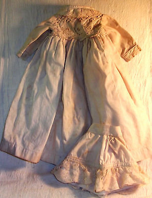 Antique Muslin and Lace Doll Dress and 1/2 Slip