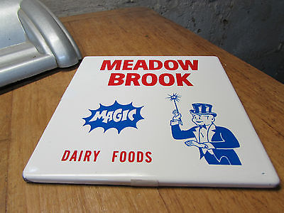 VINTAGE ENAMEL METAL MEADOWBROOK DAIRY ADVERTISING TRIVET