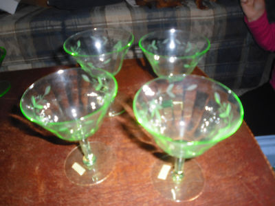 Title (ebay affiliate link): Elegant Etched Green Depression Glass Champagnes - 4