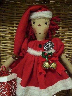 PRIMITIVE RAGGEDY ANN~SANTA'S HELPER~17in~