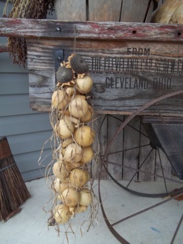Title (ebay affiliate link): SALE !! Primitive gourd cluster garland w/aged raffia & dried sunflower heads