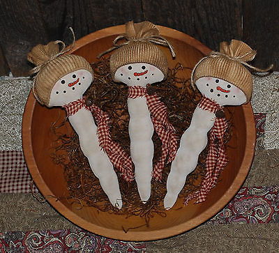 Primitive Icicle Snowman Tucks Christmas Bowl Fillers White Ornies Set of 3