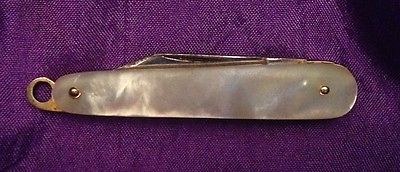 Title (ebay affiliate link): Vintage Pocket Knife Keychain 4 Dot Pearl Handle & Gold color