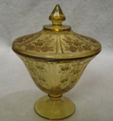 Title (ebay affiliate link): FEDERAL DEPRESSION GLASS CABBAGE ROSE COVERED CANDY JAR