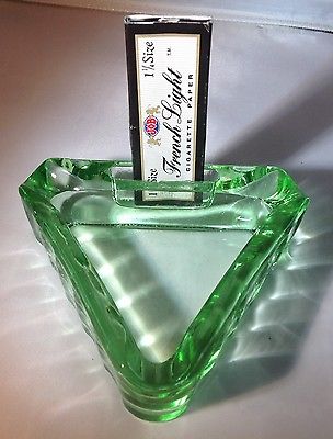 Title (ebay affiliate link): RARE Antique 1930's Green Depression Glass Triangle ASHTRAY with Match Hold