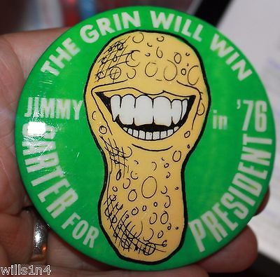 Title (ebay affiliate link): The Grin Will Win Jimmy Carter 3.5" 1976 Presidential Campaign Button Slater Co