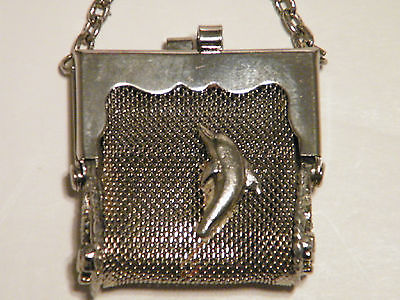 Vintage " Dolphin Purse " Key Chain ( Silver Tone )