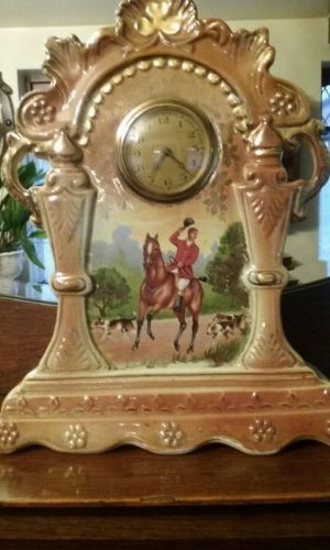 Antique Pottery Clock with Hunting Scene