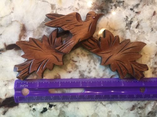 Antique Cuckoo Clock Carved Bird Wood Fragment Leaf Walnut Vintage Black Forest