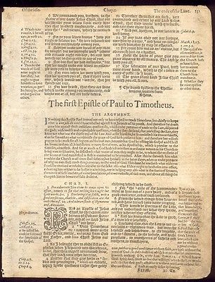 Title (ebay affiliate link): 1580 Geneva Quarto Black Letter Bible Leaf/RARE/TITLE TO 1ST TIMOTHY!